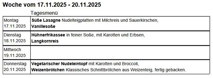 Unser Mittagessen wird von Hofmanns Menü-Manufaktur geliefert und kostet 4,80 € pro Mahlzeit. Abgerechnet wird über die Firma Kitafino aus Nürnberg.